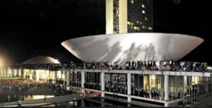 Símbolo do Poder Legislativo, o Congresso Nacional teve a plataforma superior, onde estão as cúpulas da Câmara e do Senado, invadida por manifestantes às 19h20 dessa segunda-feira (17/6), no dia mais tenso dos protestos na capital federal, e que se alastraram por todo o país. O grupo — 10 mil de acordo com os organizadores e 7 mil na avaliação da Polícia Militar — caminhava pelo Eixo Monumental quando se dividiu ao meio para confundir os homens da PM. Parte correu para o gramado em frente ao espelho d’água do Congresso. O outro, aproveitando um descuido assumido pelos próprios seguranças, foi até o teto de mármore.